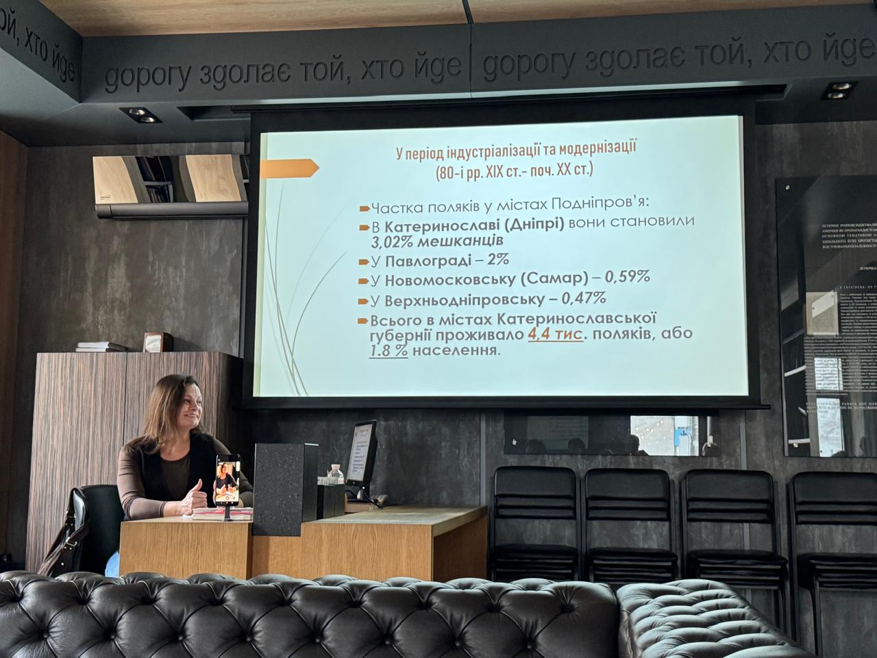 Окрема увага була приділена періоду індустріалізації та модернізації (80-ті роки XIX ст. — початок XX ст.). На основі архівних даних лекторка розповіла про внесок польської спільноти в розвиток міст Подніпров’я: